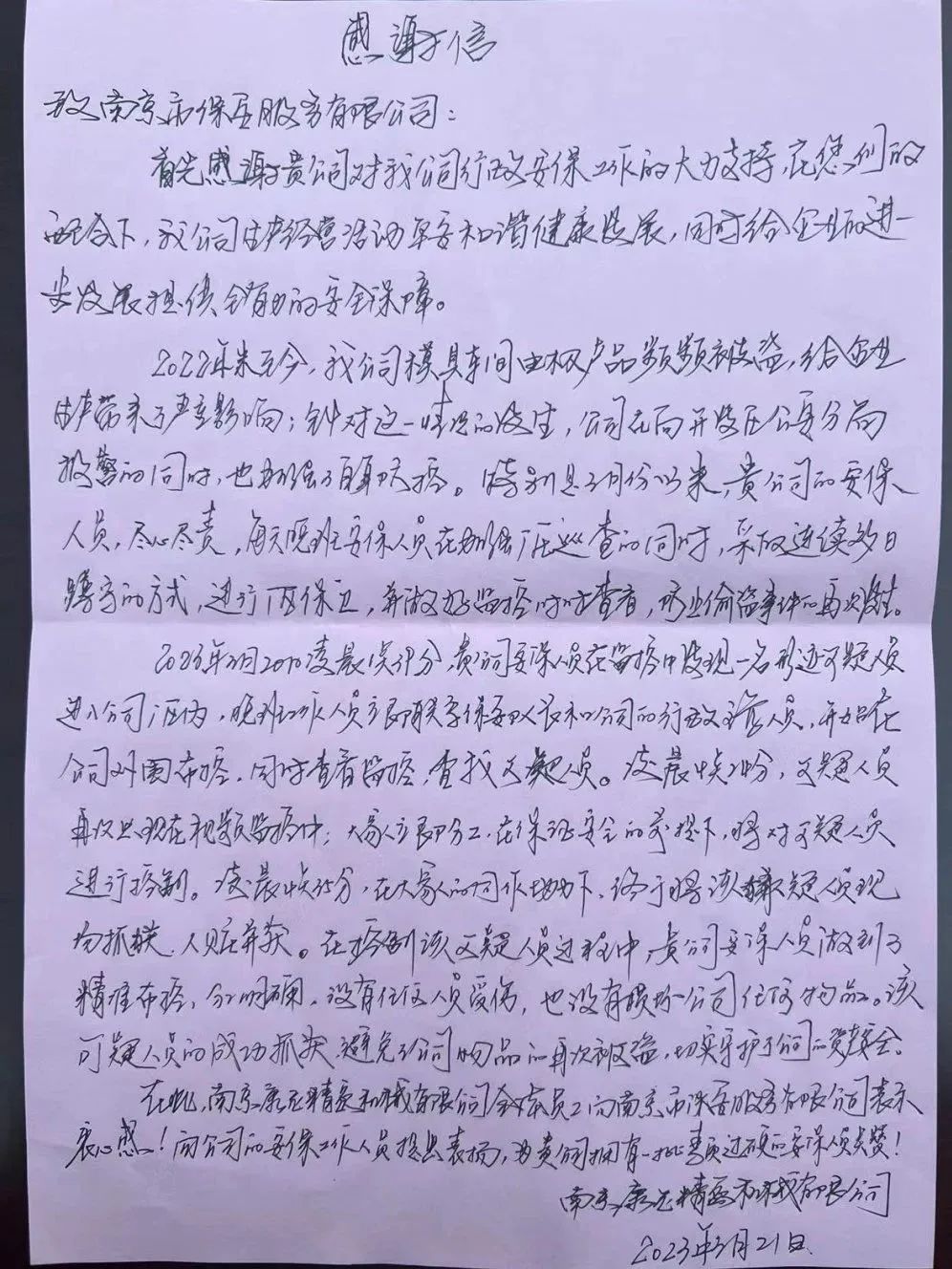 公司領導表示,保安員僅僅是做了分內(nèi)工作就得到康尼集團如此高規(guī)格的表彰,我們深受鼓舞,感謝康尼集團對我司的信任和支持,讓我們沒有理由不把本職工作做好。公司6名保安員從發(fā)現(xiàn)可疑目標到精心布控再到奮不顧身勇擒竊賊,體現(xiàn)了南京市保人頑強的工作作風。為鼓勵先進、樹立典型,在全體員工中營造堅守初心、愛崗敬業(yè)、履職盡責的濃厚氛圍,公司將予以表彰獎勵。希望全體員工能夠繼續(xù)秉承“服務無極限、安全到永遠”的服務理念為保障客戶單位的平安做出自己的貢獻。